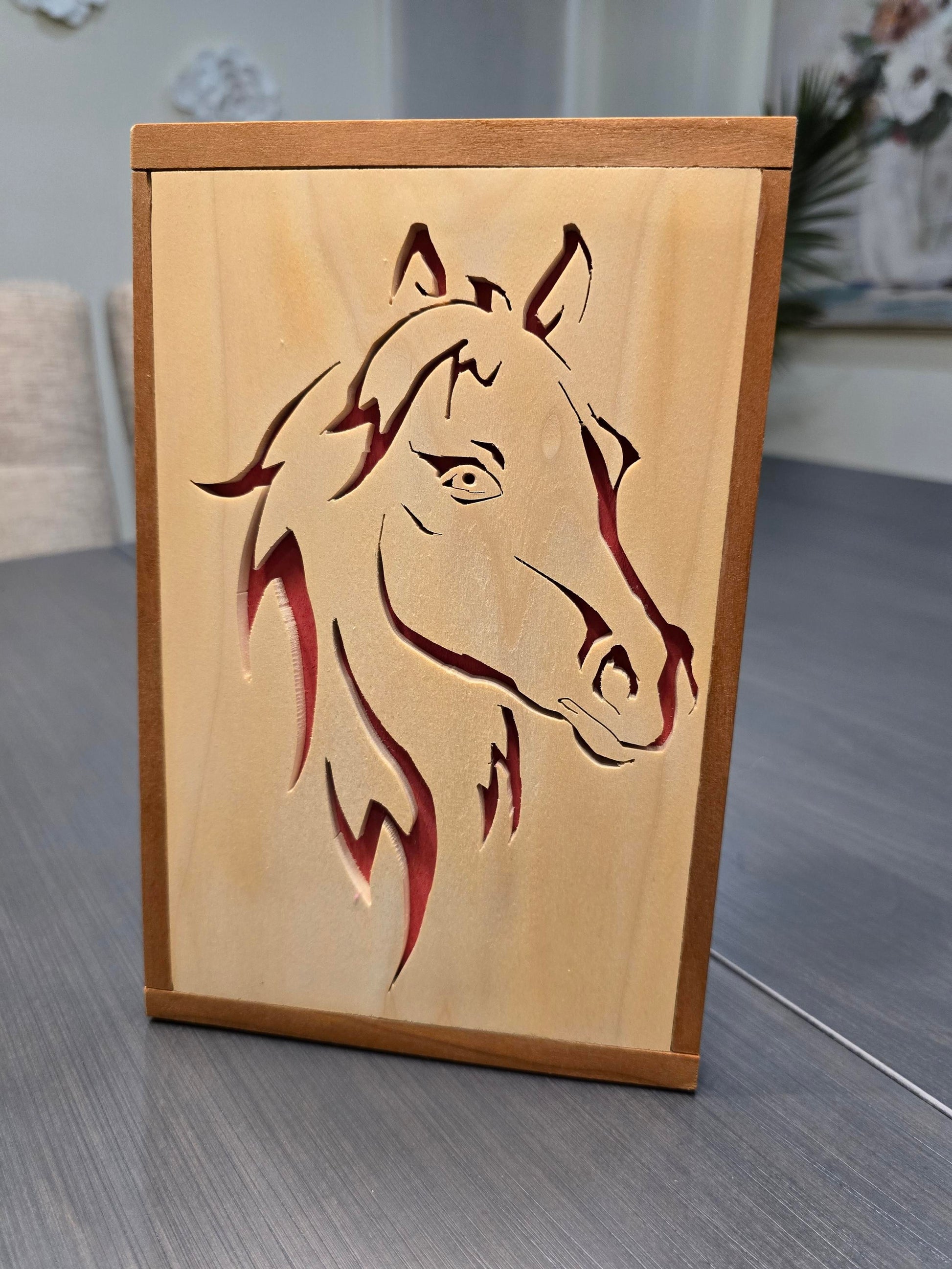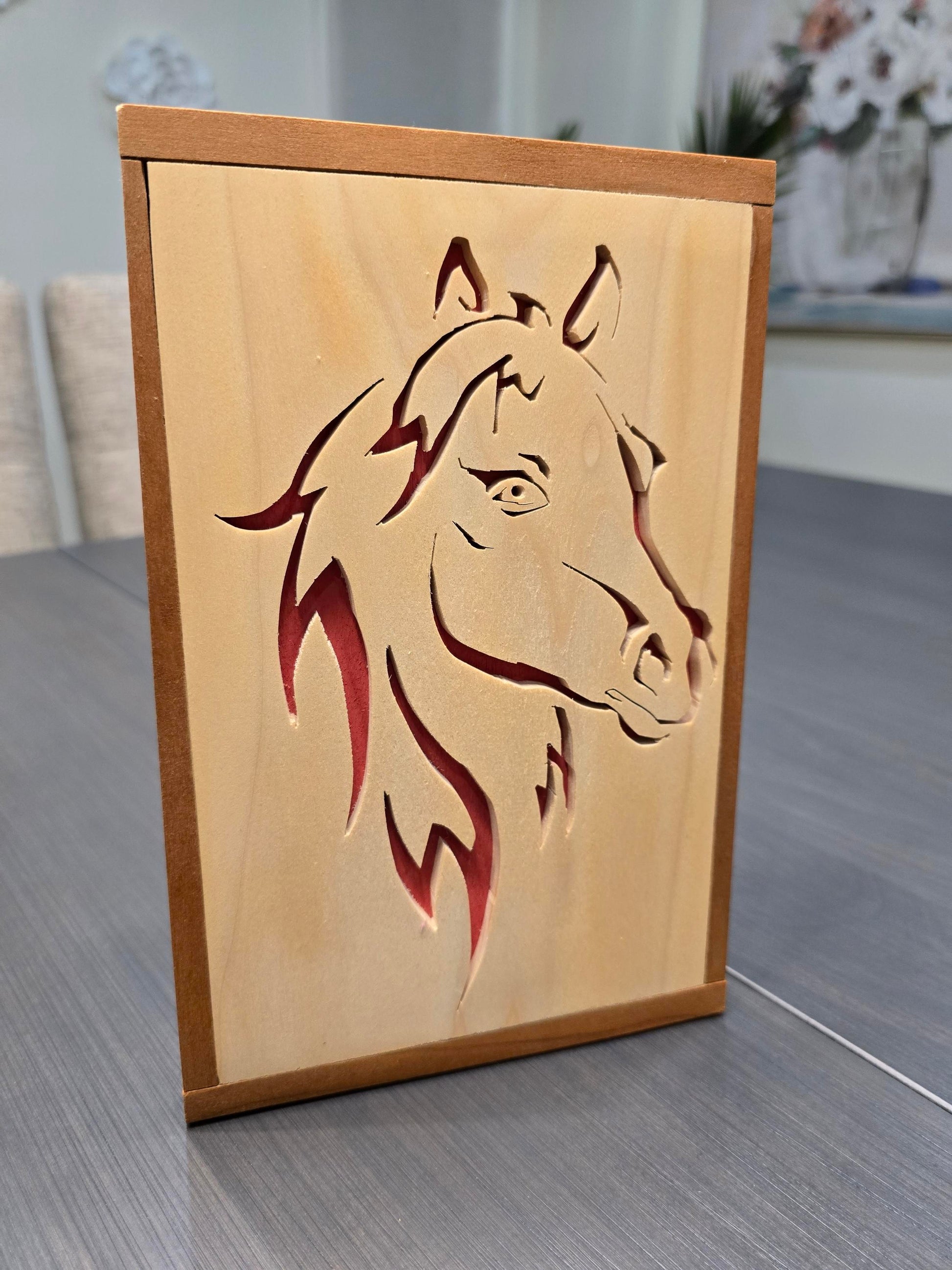 Precise scroll saw designs featuring a vibrant orange backdrop.